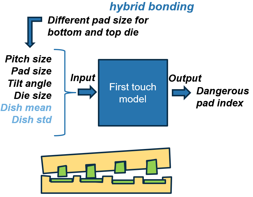 IO cell designs typically contain a driver and some electrostatic discharge (ESD) protection. For advanced bonding pitches, the size of the IO cell can easily be larger than the area required for a bonding pad, significantly limiting the use of advanced bonding pitches. In order to reduce the amount of ESD protection in IO cells for advanced packaging, we need to understand the ESD mechanisms that cause failures. Typically, ESD manufacturing controls will reduce the magnitude of ESD events that occur, but will not entirely eliminate the discharge during bonding. Based on the assumption that this ESD event will occur at a location determined by the first point of copper-copper contact during bonding, we have developed a tool to simulate the risk of ESD events at different locations on a die or wafer for different bonding parameters and die size.